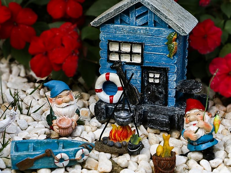 The Fishing Gnome Fairy Garden is hoping to capture your attention. Imagine a sunny afternoon by a babbling brook, where two cheerful gnomes are busy with their daily fishing adventures. With this 23-piece miniature gnome garden set, you can bring this magical scene to life in your own home or garden!
